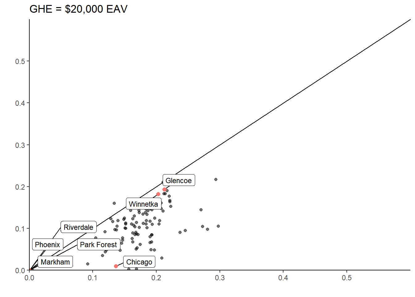 Figure 2. Value of Median Residential Property Indifferent to Elimination of GHE